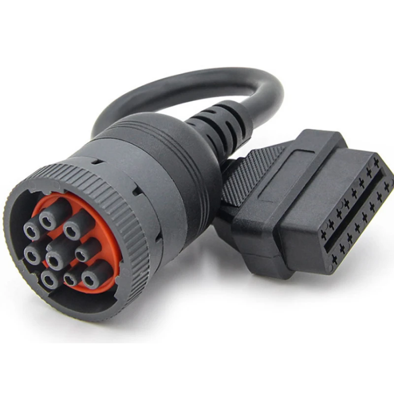 No special installation is required. Simply connect the 9-pin end to the J1939 port and the 16-pin end to the OBD2 tool. Make sure both connections are secure to avoid communication faults. Avoid bending the cable excessively to preserve its integrity.