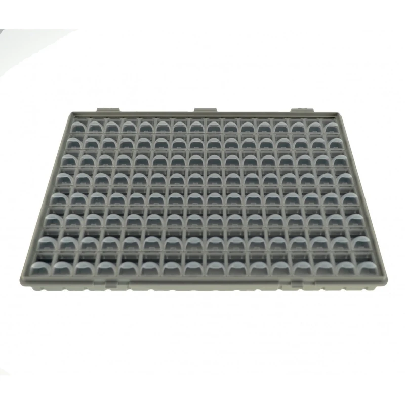 • Dispone di 128 scomparti individuali con coperchio, ideali per separare e proteggere componenti SMD.