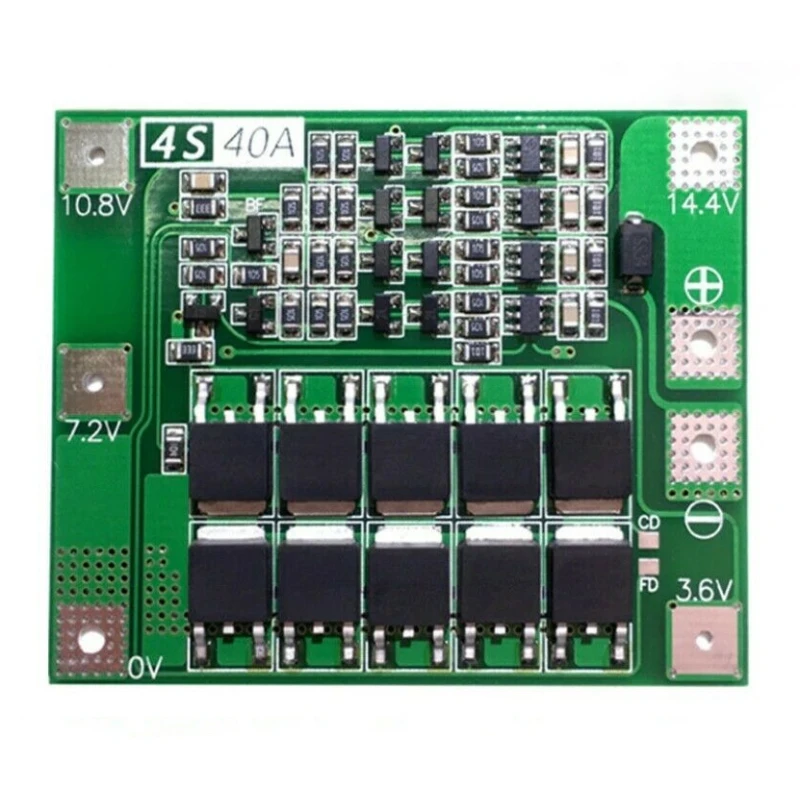 Questa scheda di protezione è progettata per batterie al litio in configurazione 4S, con una tensione nominale di 16.8V e una corrente massima di scarica continua di 40A, ideale per applicazioni che richiedono alta potenza e sicurezza.