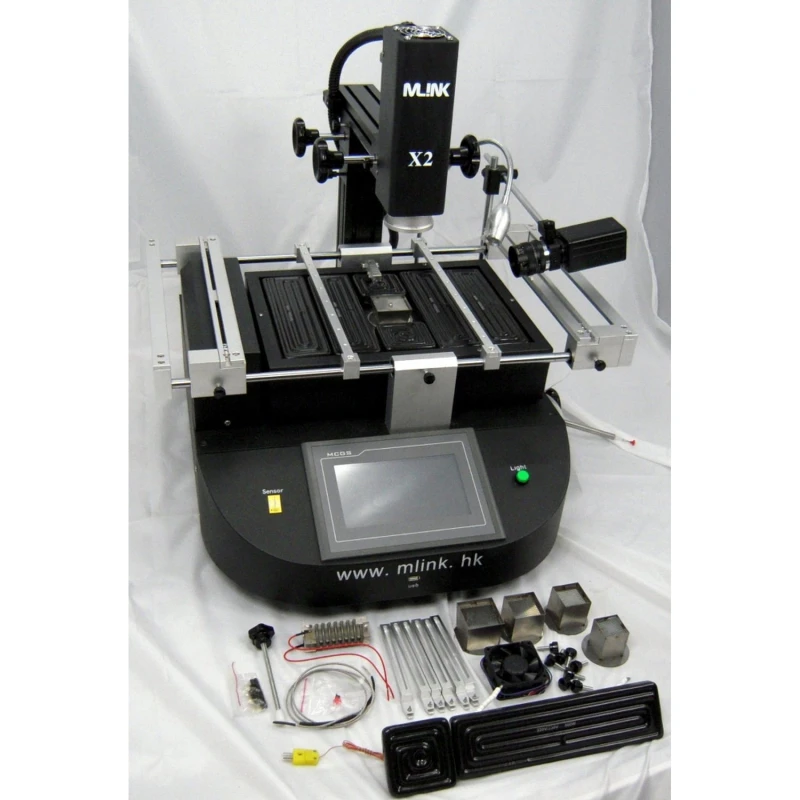 L’Estació Mlink X2 destaca pel seu sistema de lliscament lineal als eixos X, Y i Z, que permet ajustos de precisió i posicionament ràpid. Inclou una pantalla tàctil d’alta definició per a un control intuïtiu, gestió de perfils i protecció mitjançant contrasenya. Ofereix tres zones de calefacció independents amb control de temperatura fi (tolerància ±3 °C) i anàlisi immediata de la corba tèrmica, millorant la repetibilitat i permetent perfilar processos segons el component. En comparació amb alternatives, sol facilitar canvis ràpids de boquilla i ajustos de calefacció, optimitzant temps i reduint errors de manipulació.